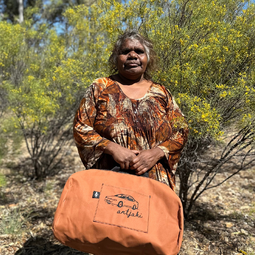Antjaki means “overnight trip” in Pitjantjatjara – a fitting name for a bag designed to carry all you need for a journey.
